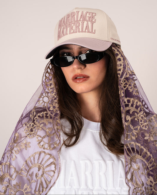 Wifey Gothic Trucker Hat – Cream/Light Blue
