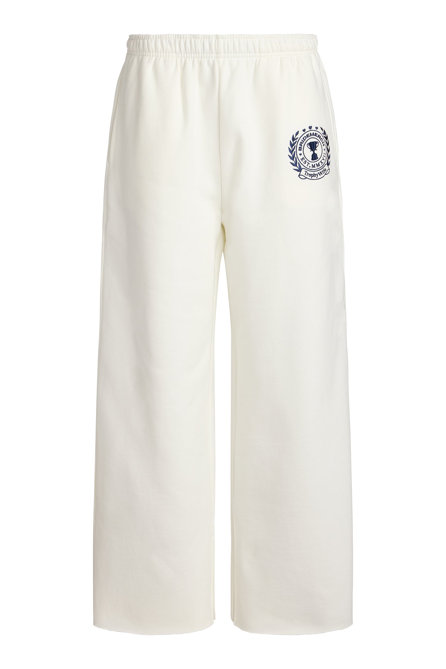 Meet our newest mid-rise Wide Leg Slit Pant, in heather grey, finished with the Trophy Wife crest at the front leg for a subtle statement moment. Made from our softest fleece, this style features a relaxed wide-leg fit and a raw-edge hem — easy to customize for our shorter girlies.