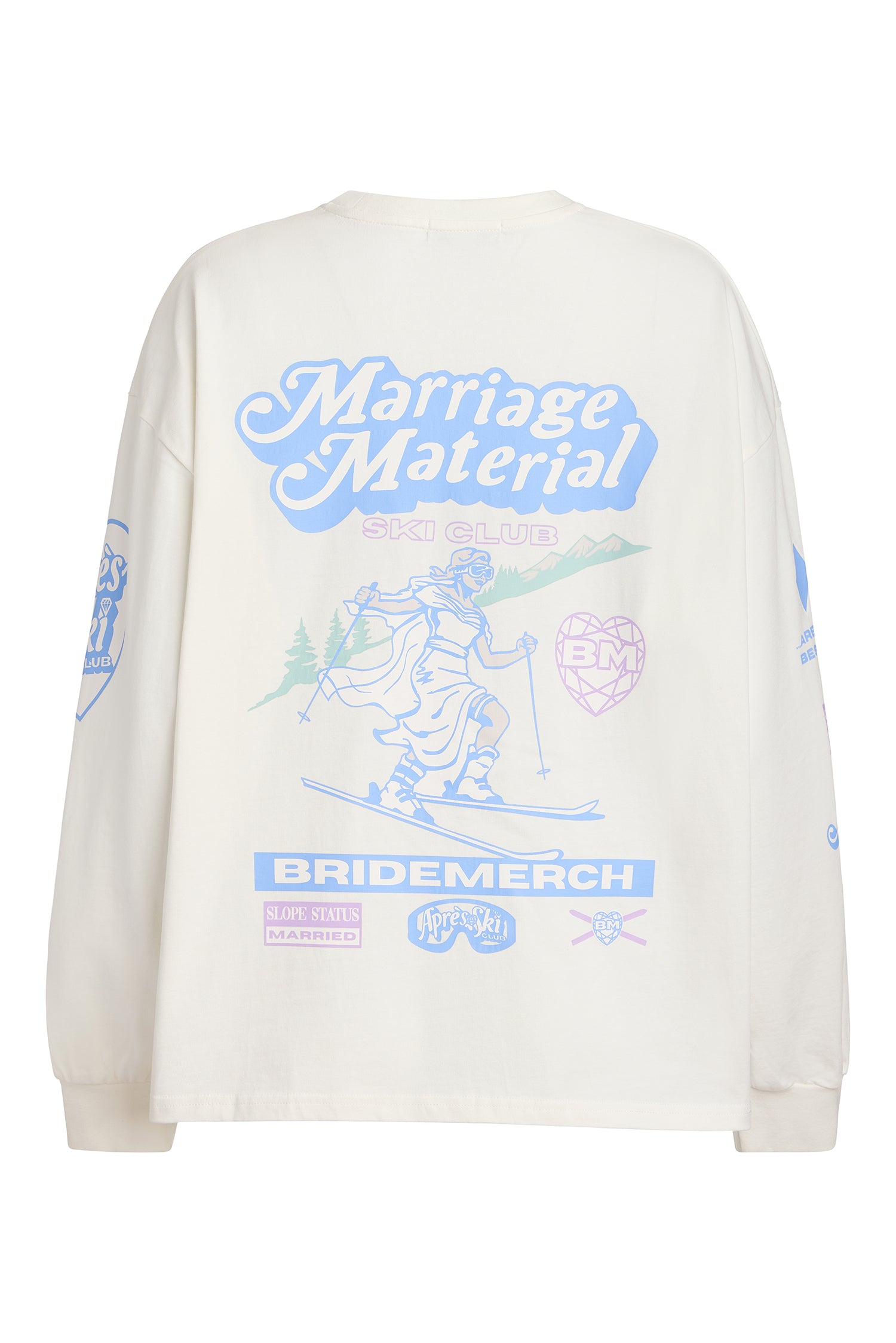 The Marriage Material Ski Club Crew is your go-to long sleeve for off-duty days, travel moments, and everything in between. Designed with all-over ski club–inspired graphics, this heavyweight tee brings an effortless, cool-girl edge to your everyday wardrobe.